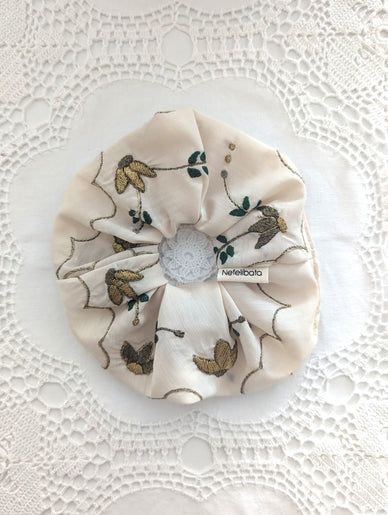 Scruncie για τα μαλλιά από παραδοσιακό κέντημα με μαλακό λάστιχο