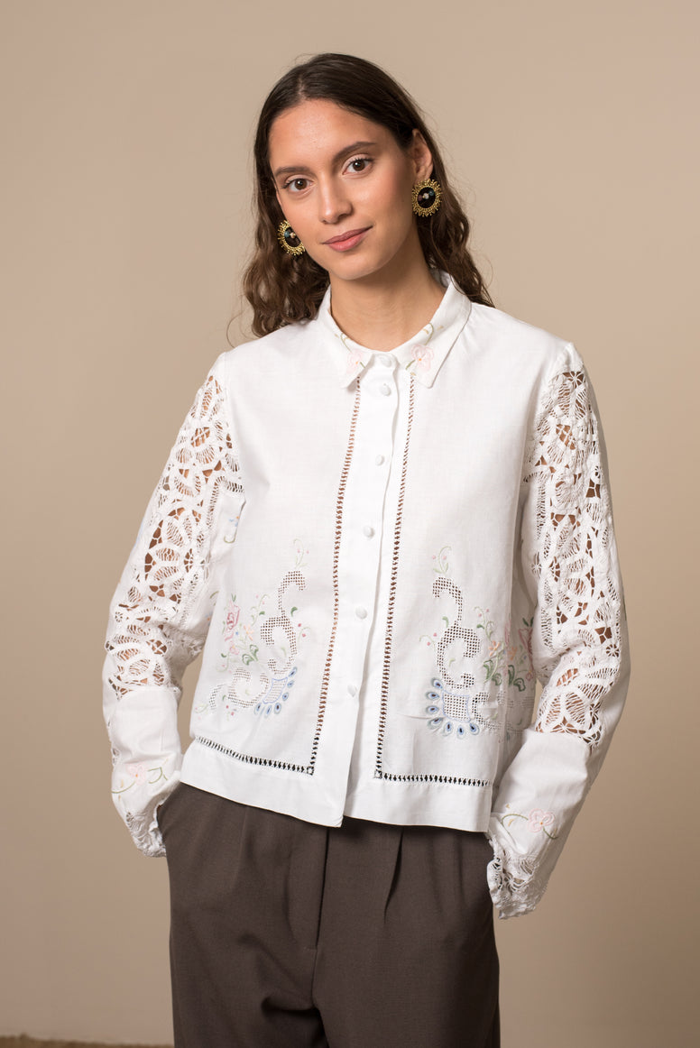 πουκαμισο κεντητο απο παραδοσιακο τραπεζομαντηλο