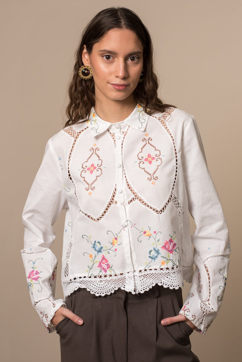 πουκαμισο απο παραδοσιακα εργοχειρα και τραπεζομαντηλα