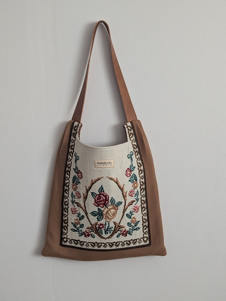 Τσάντα από τσόχα διακοσμημένη με χειροποίητο , παραδοσιακό κέντημα σταυροβελονιά